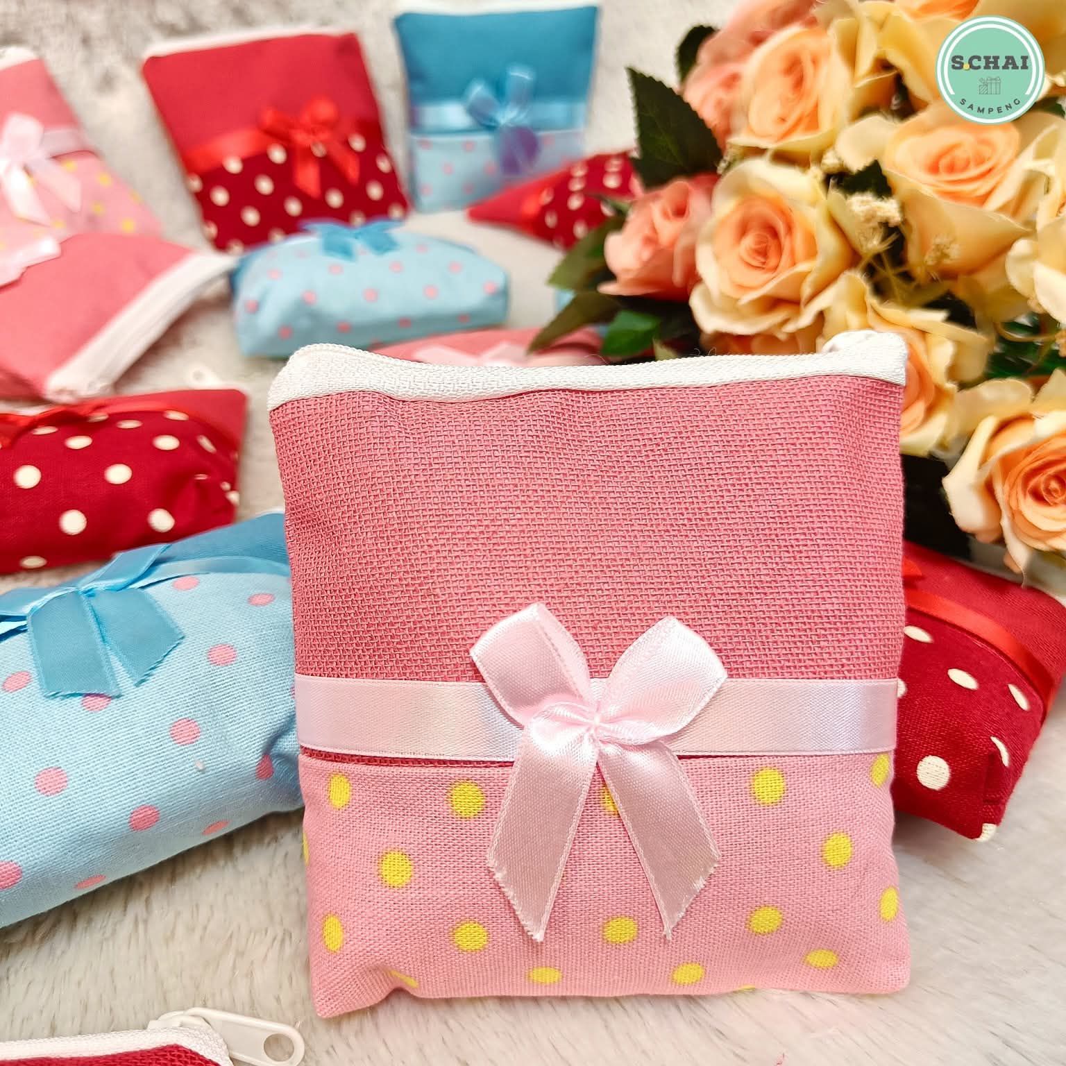 กระเป๋าทูโทนลายจุด ติดโบว์ มี 3 สี ชมพู/ฟ้า/แดง