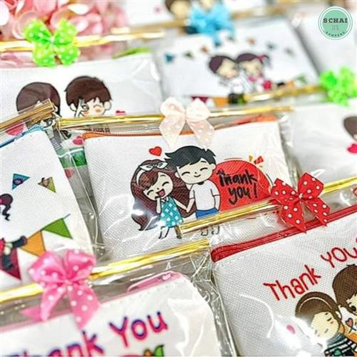 กระเป๋าบ่าวสาวม้วนลวด ใส่ถุงแก้วใส