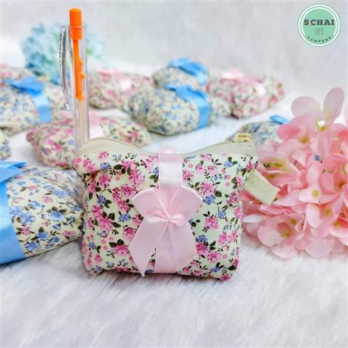 กระเป๋าลายดอกไม้ ติดโบว์